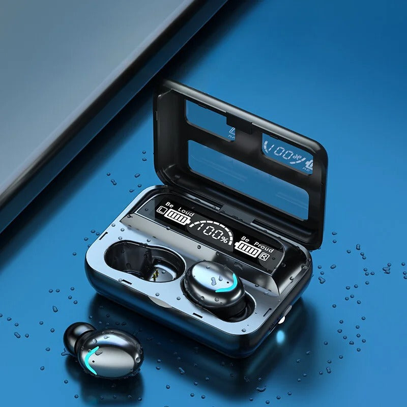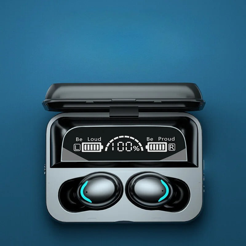 Display LED e Power Bank Integrado: A caixa de carregamento do fone não apenas recarrega os fones, mas também serve como um prático Power Bank com uma saída USB. Nunca mais se preocupe com a bateria do seu celular durante emergências. O display de LED na caixa fornece atualizações em tempo real sobre o status da bateria dos fones e da caixa.